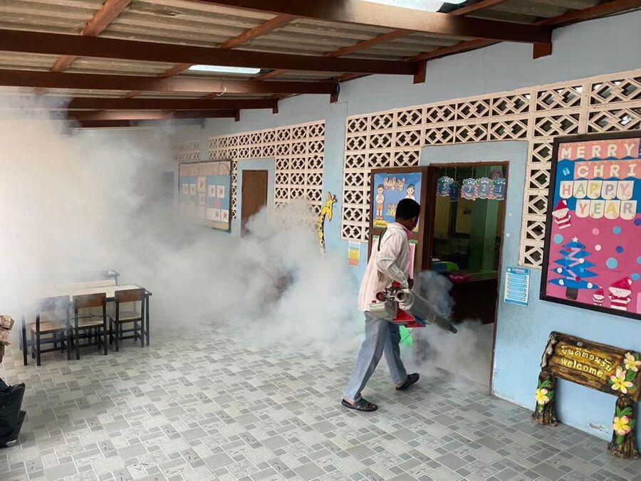 โรงเรียนบ้านบุไผ่ฉีดหมอกควันกำจัดยุง